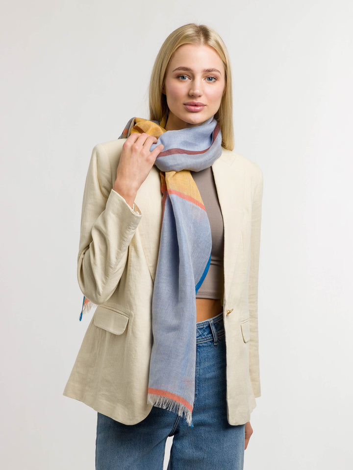 Schal mit Colour Blocking in Leinenmischung