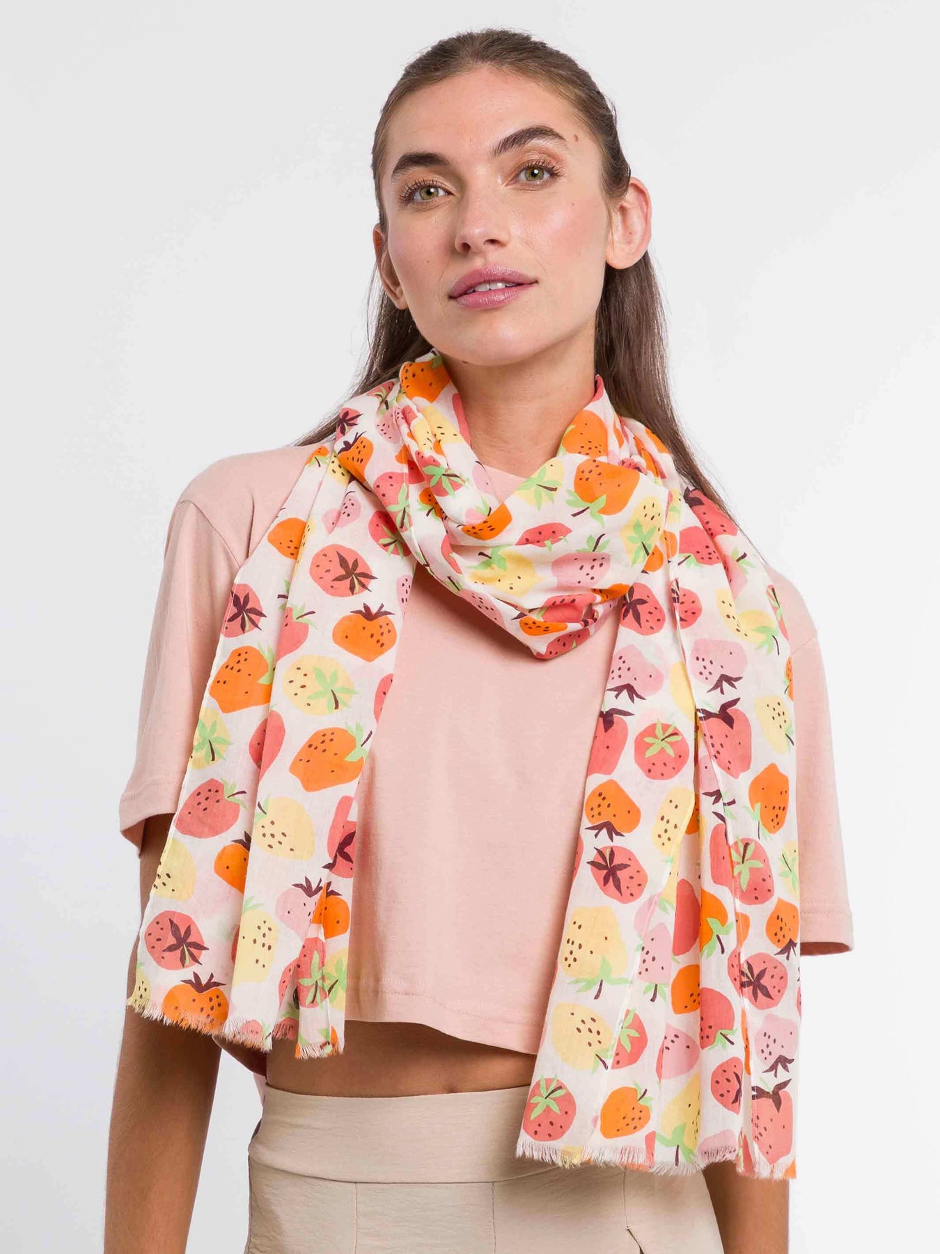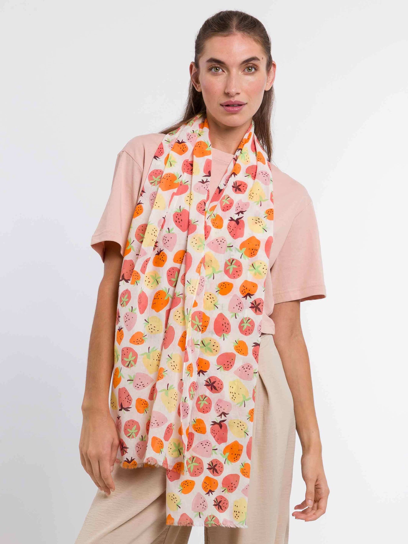 Baumwollschal mit Erdbeer-Print