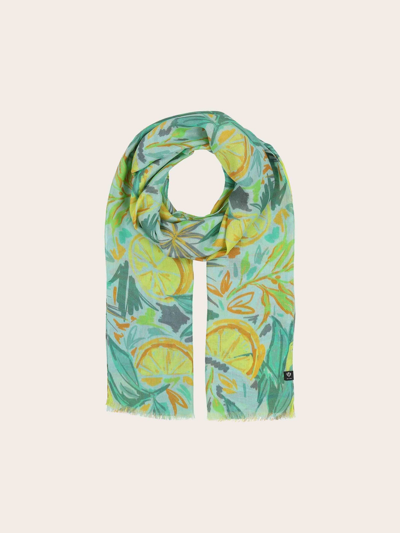 Hallo Sommer: Der weiche Viskoseschal lässt uns mit seinem Muster mit Zitrusfrüchten und Blättern an Urlaub im Süden denken. Schlingen Sie den 58 x 178 cm großen FRAAS Schal lässig um den Hals oder legen Sie ihn elegant um die Schultern. Ein echter Pluspunkt: Das Accessoire wurde nachhaltig in Italien produziert. Es besteht aus Viskose. Die Viskosezellulose, der Grundstoff der Viskose, wurde aus nachhaltig bewirtschafteten Wäldern gewonnen.