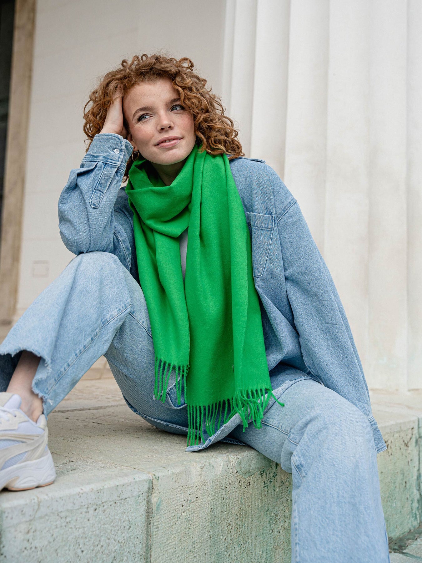 Der Fransenschal begeistert auch dadurch, dass es viele Möglichkeiten gibt, ihn zu binden. So kreieren Sie mit dem gleichen Schal im Handumdrehen eine Vielzahl von Looks. Durch das Binden können Sie den Fransenschal vom praktischen Begleiter am Tag zu einem eleganten Überwurf am Abend machen. Es gibt verschiedene Tragevarianten zu entdecken: Klassiker: Schlicht, einfach und immer passend - legen Sie den Schal mit Fransen einfach einmal um Ihren Hals und lassen Sie beide Enden rechts und links herabhängen. Dieser Style ist auch perfekt für den Sommer geeignet. Doppelt: Der Fransenschal kann doppelt um den Hals gelegt werden, so wird dieser optimal gewärmt. Große und breite Schals mit Fransen sind dafür besonders gut geeignet. Einfach: Legen Sie den Schal einmal um Ihre Schulter und lassen Sie beide Enden rechts und links herabhängen. Diese Variante ist perfekt für den Sommer geeignet. Schützen Sie zum Beispiel Ihre Schultern vor der direkten Sonneneinstrahlung. Maskenersatz: Fransenschals lassen sich nicht nur als modisches Accessoire locker um den Hals tragen. Sie dienen aktuell auch ganz schnell als einfache Mund- und Nasen-Bedeckung. Dafür eine Lage etwas höher ins Gesicht ziehen und sofort haben Sie einen modischen Maskenersatz für den Notfall.