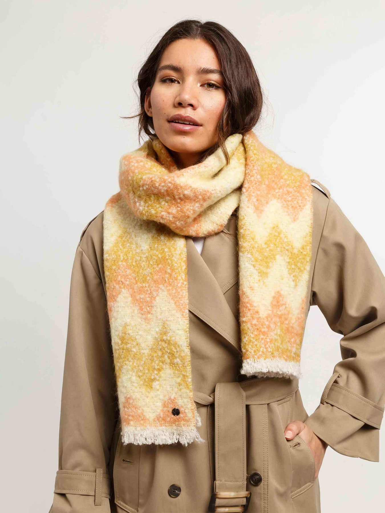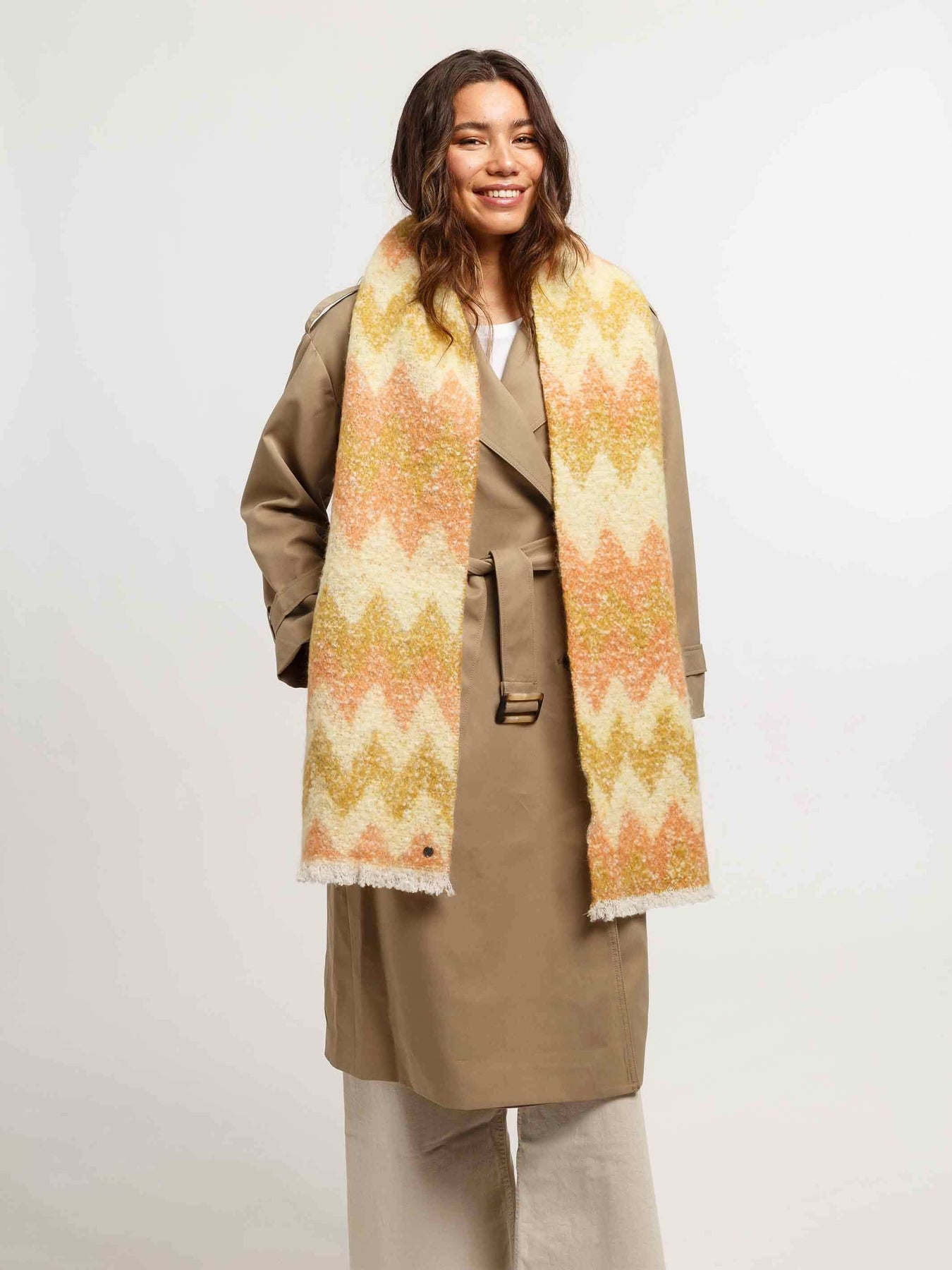 • Wie lässt sich ein beiger Schal kombinieren?