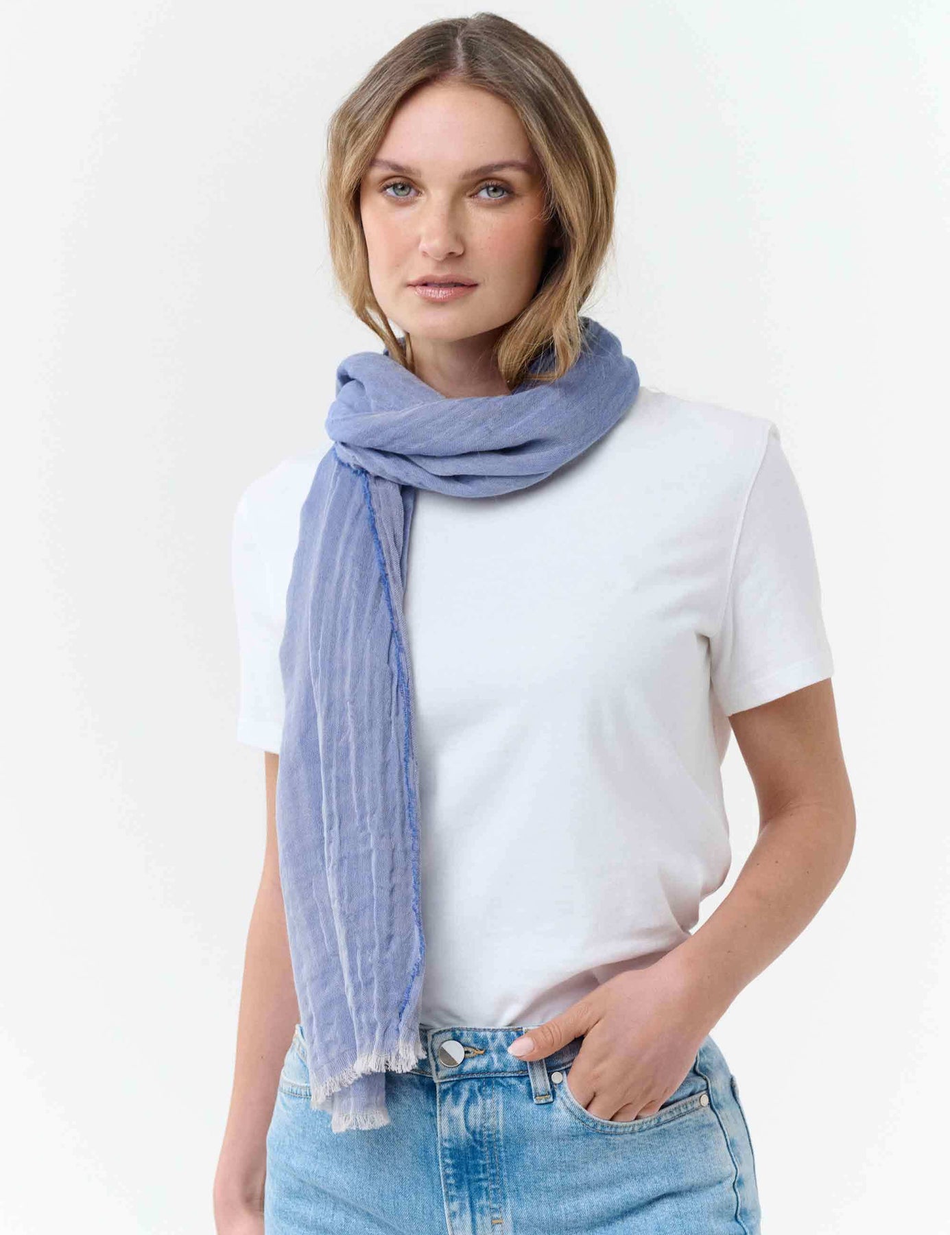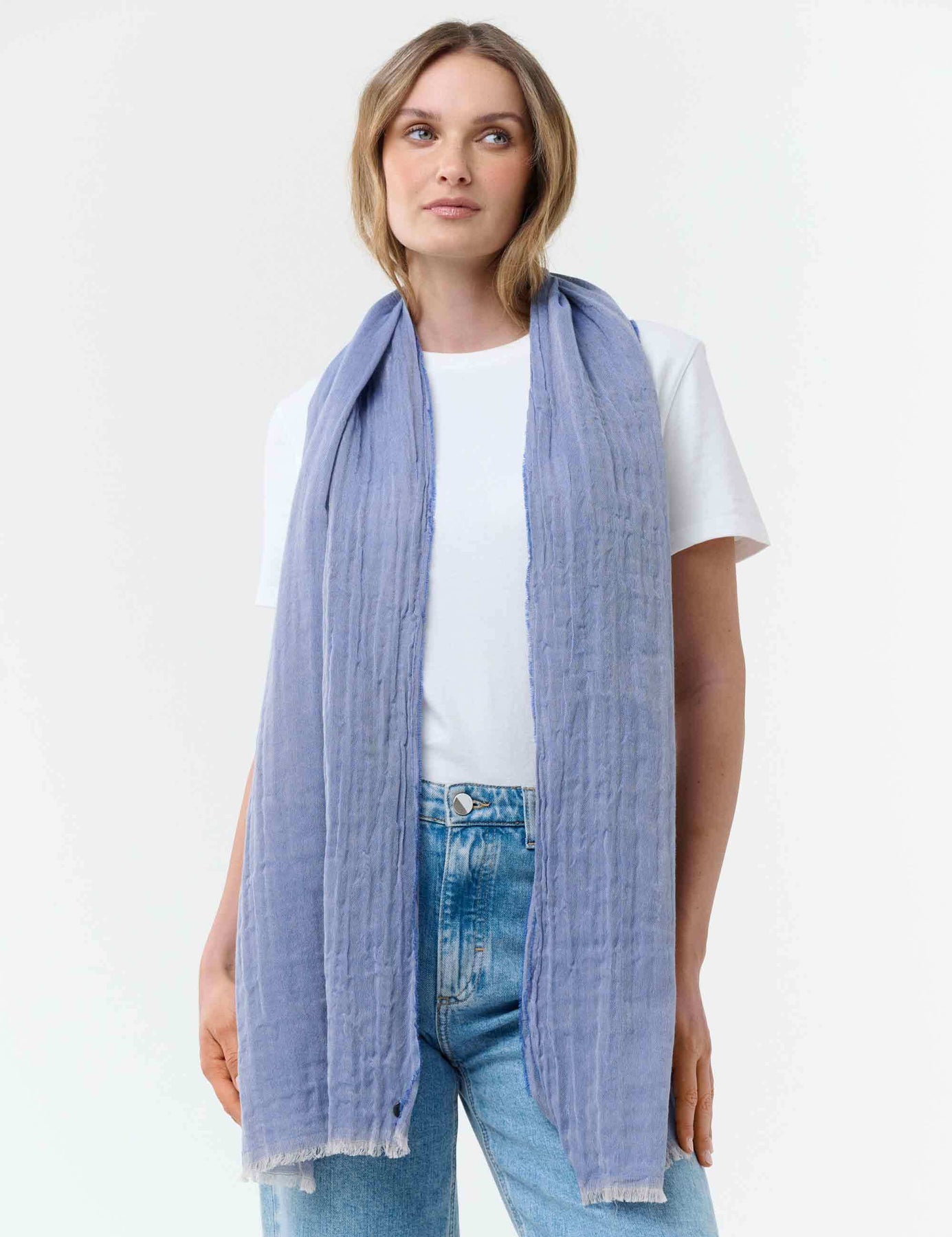 Leichter einfarbiger Schal in Krepp-Optik aus reiner Baumwolle