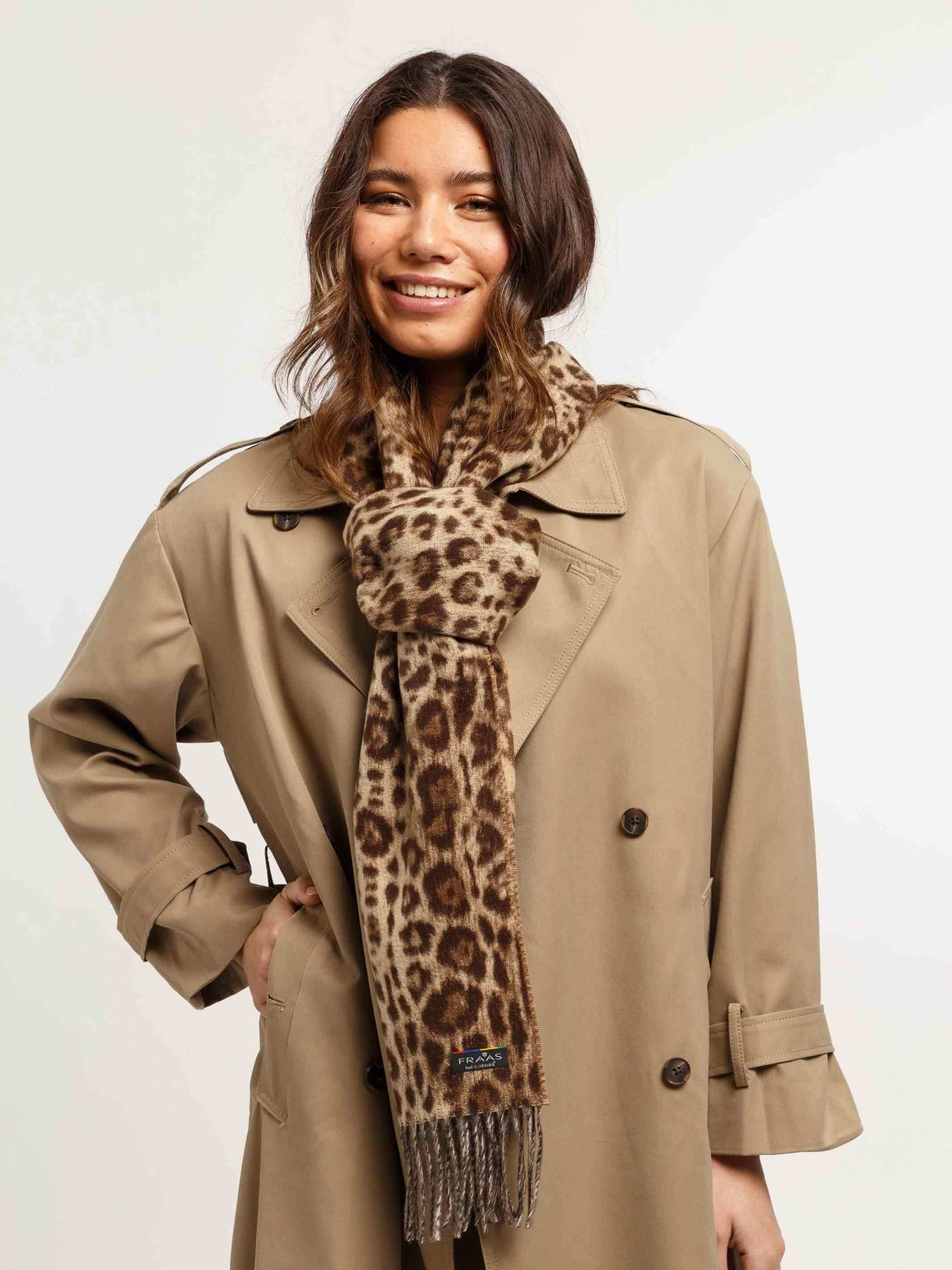 Schicker Allrounder für den Winter: Der FRAAS Cashmink-Schal ist mit seinem Leoparden-Design und den langen Fransen ein richtiger Hingucker. Der classy Look des Schals ist mit jedem modischen Outfit - von Business-Look bis Damenmantel - sehr gut kombinierbar. Ein elegantes Accessoire. Der 35 x 200 cm große Webschal ist aus bestem Cashmink von FRAAS gefertigt: sanft zur Haut, wärmend und weich.