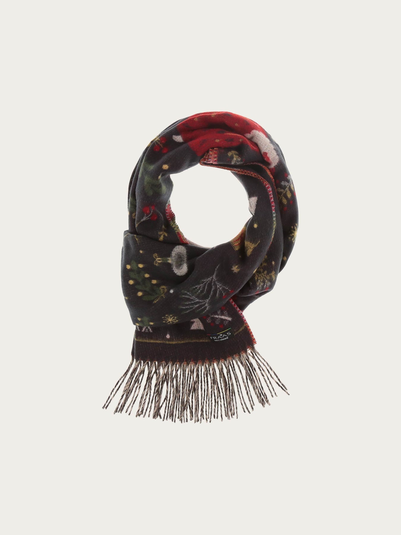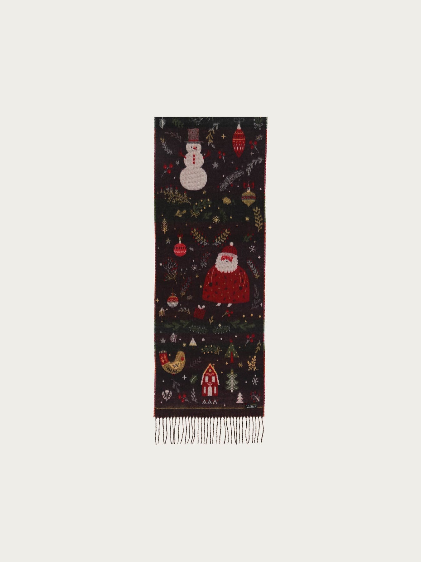 Weihnachten kann kommen! Der Schal mit fröhlichen Weihnachts-Motiven von FRAAS verbreitet gute Laune und macht Weihnachtsstimmung. Der Webschal ist 35 x 200 cm groß und aus extra weichem Cashmink, der Spezialität aus dem Hause FRAAS. Hält Kälte und Feuchtigkeit ab und ist auch für Allergiker geeignet. Der Schal ist der ideale Begleiter für alle, die Weihnachten lieben.