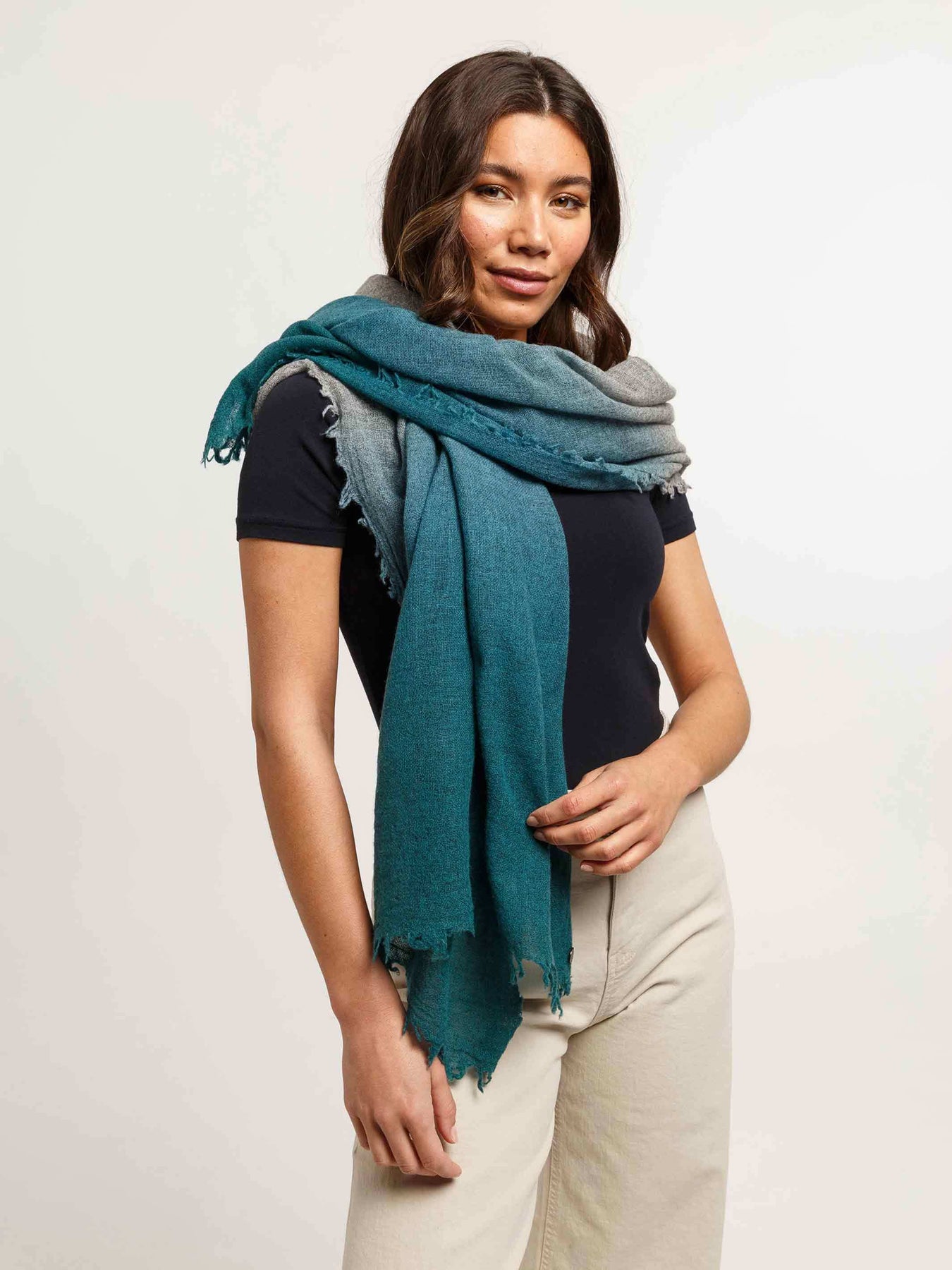 Wollschal im Ombré-Design