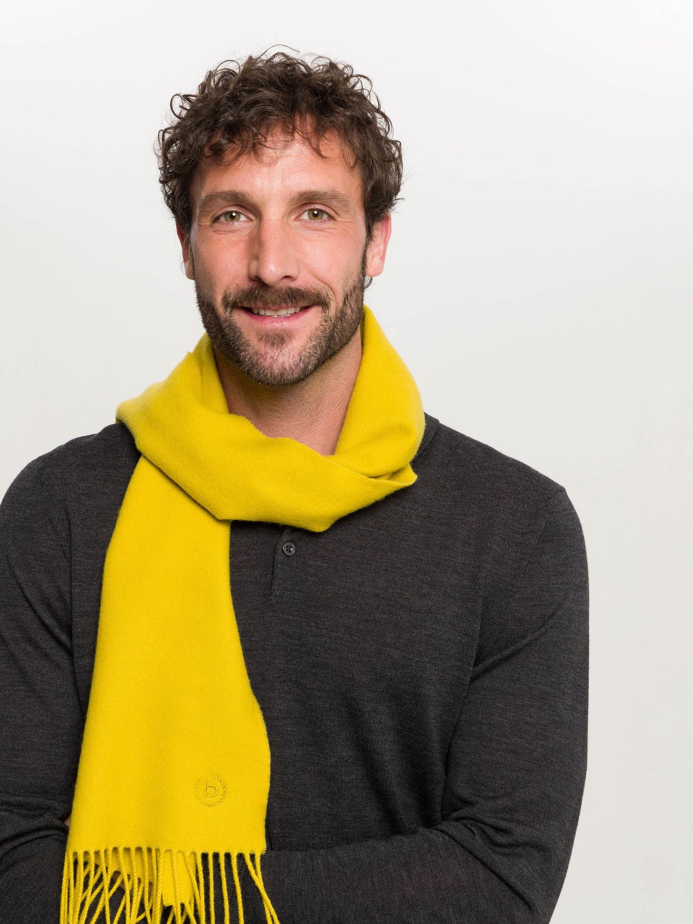 Einfarbiger Schal mit gesticktem bugatti-Logo aus reiner Wolle