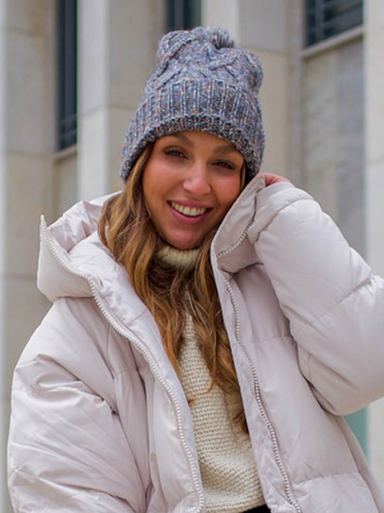 Melierte Strickmütze mit Zopfmuster