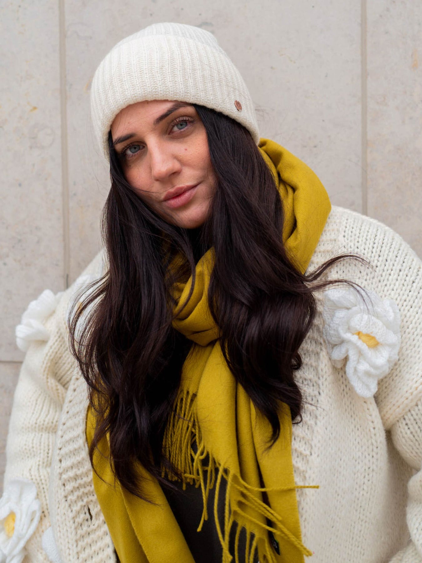 Grobstrick-Mütze aus reinem Kaschmir