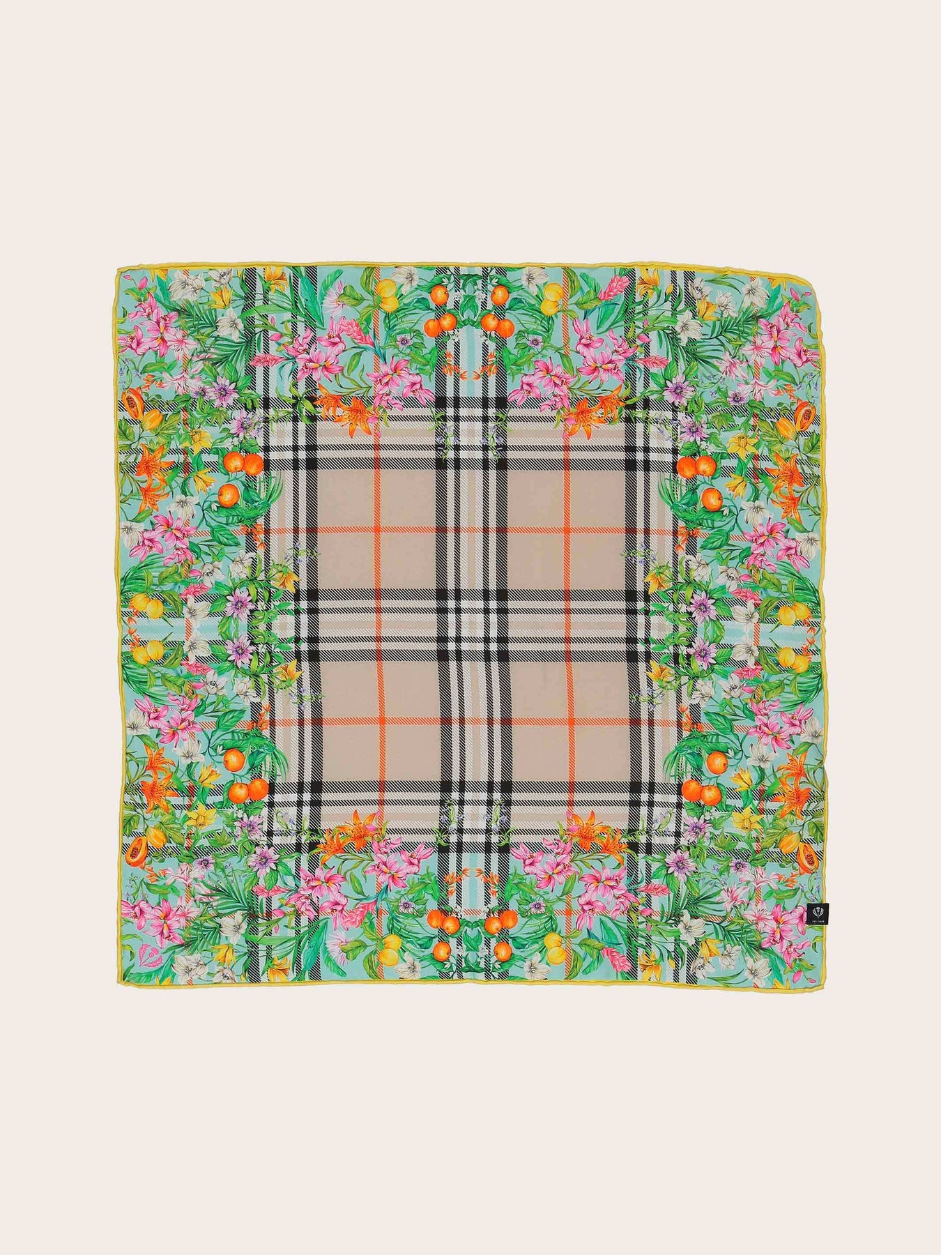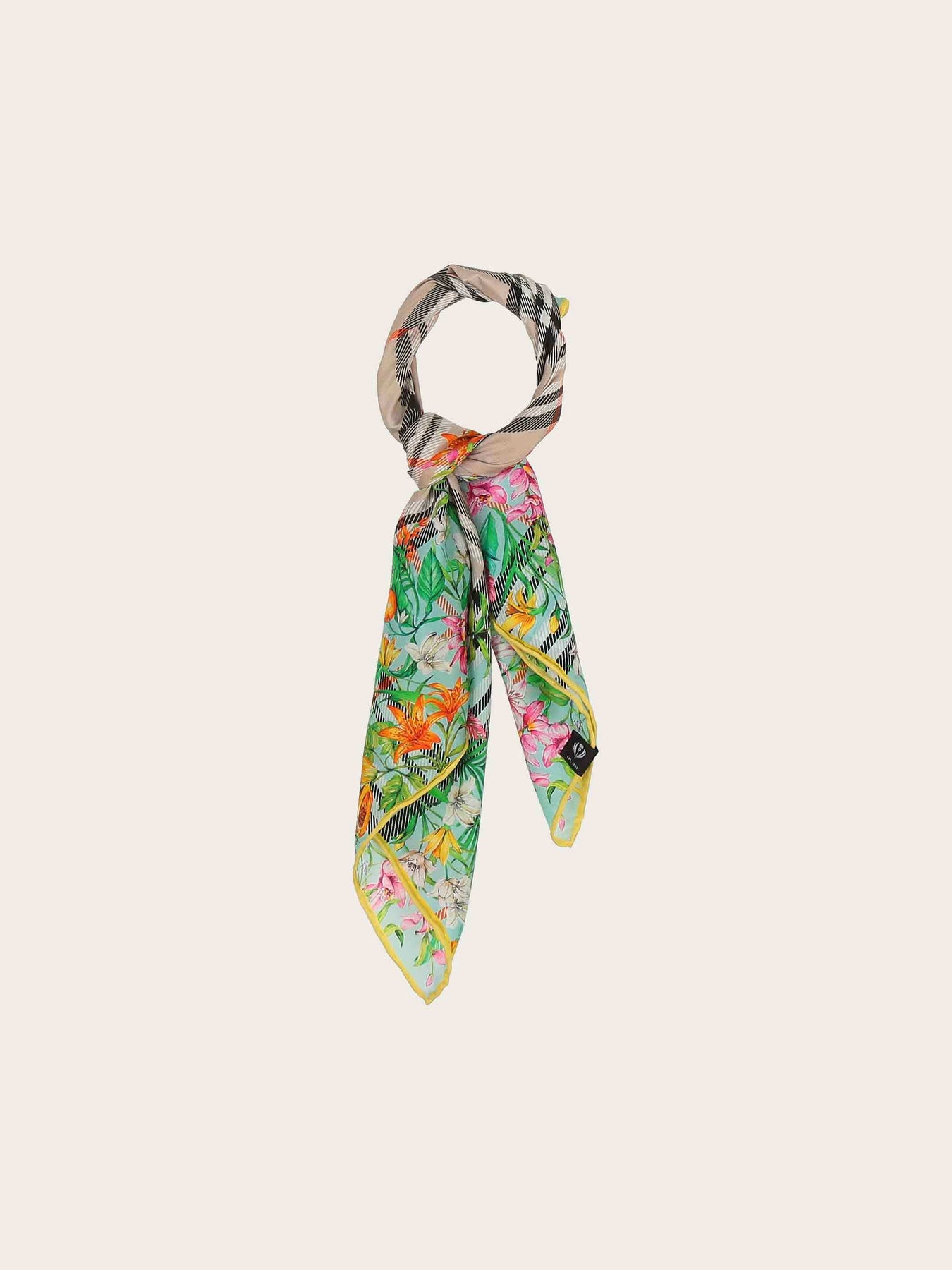 Silk square with FRAAS Plaid and jungle print