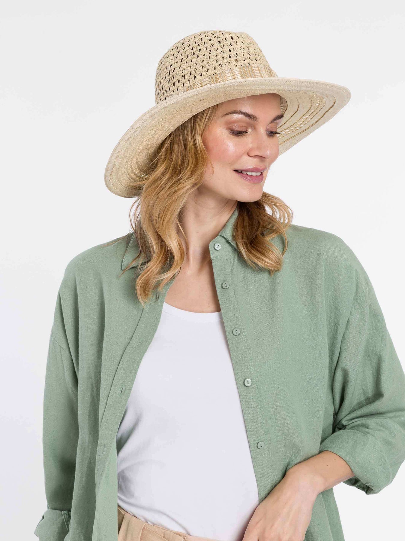 Most wanted: The Loevenich Fedora with straw hatband combines lightness, comfort and stylish design. Made from 88% paper and 12% polyester, the hat is breathable and perfect for warm days. The elastic inner band ensures a comfortable fit, while the straw hatband adds a natural, elegant touch to the design. With its generous size and different paper weaves, this fedora is the perfect accessory for any summer outfit!