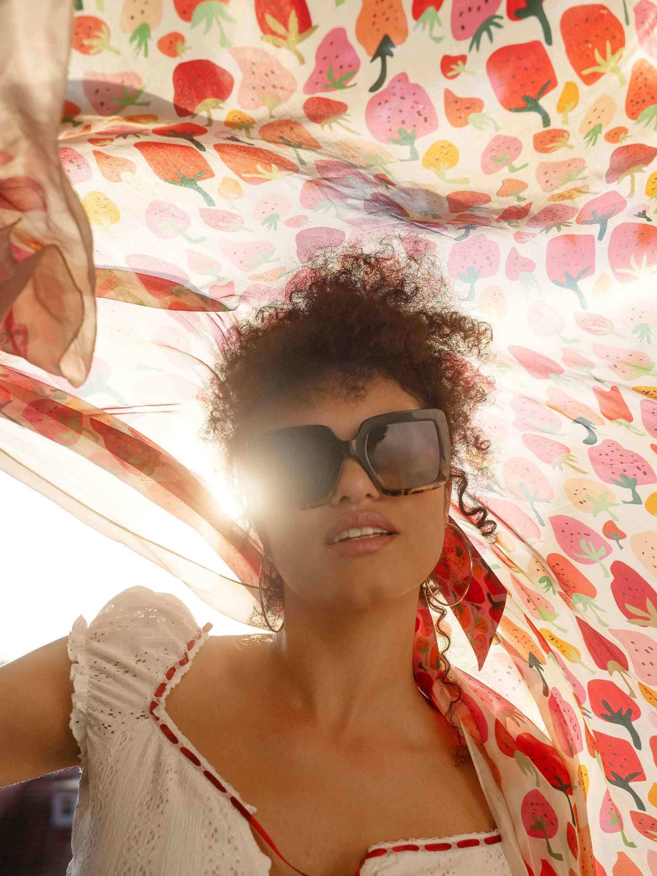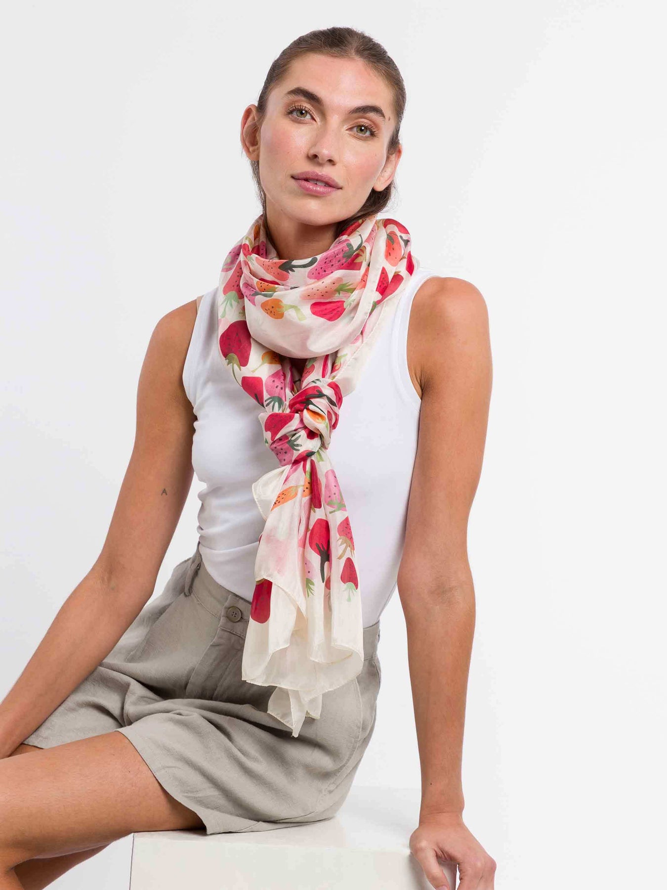 XL silk stole with strawberry design