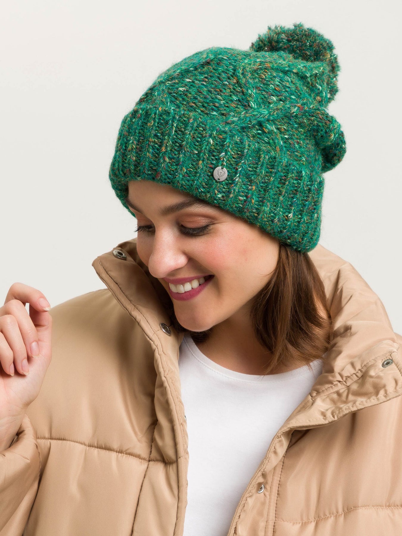 This makes winter fun: the mottled knitted hat with cable pattern and bobble looks great and keeps your head and ears nice and warm even in cold temperatures. Thanks to the wide cuff and a size of 22 x 25 cm, the hat fits perfectly on the head and can be combined with a sporty casual outfit or an elegant coat. The hat is an eye-catching addition to any outfit. It makes fall or winter walks fun!