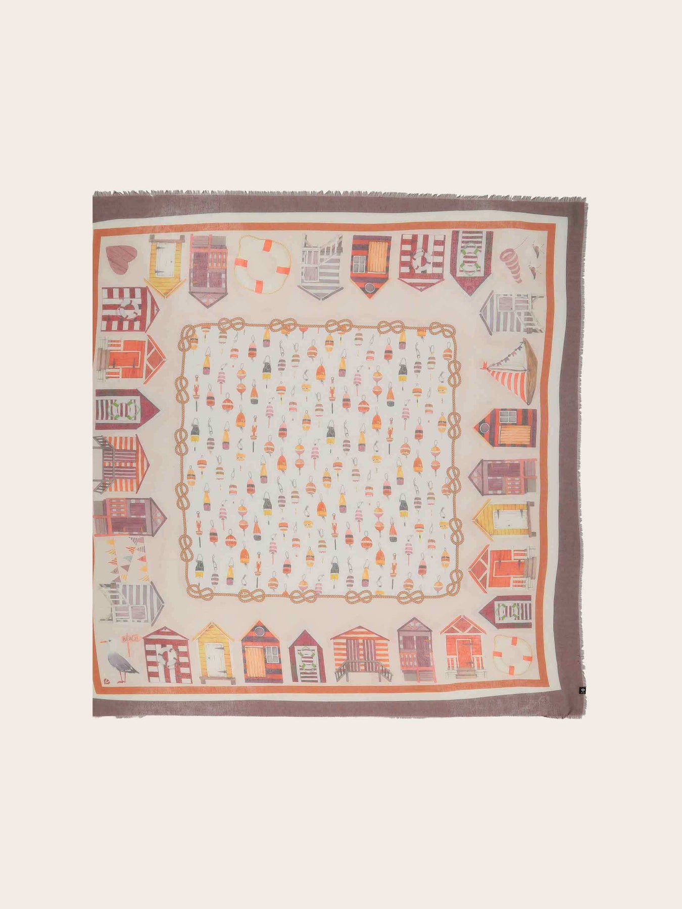 FRAAS Sustainability Edition: Playful women's square (120 x 120 cm) with colorful buoys, small beach houses and maritime symbols - reminiscent of vacations by the sea. Pleasantly light and versatile. Made from 100% recycled polyester from PET bottles - stylishly combine accessories and act sustainably at the same time.