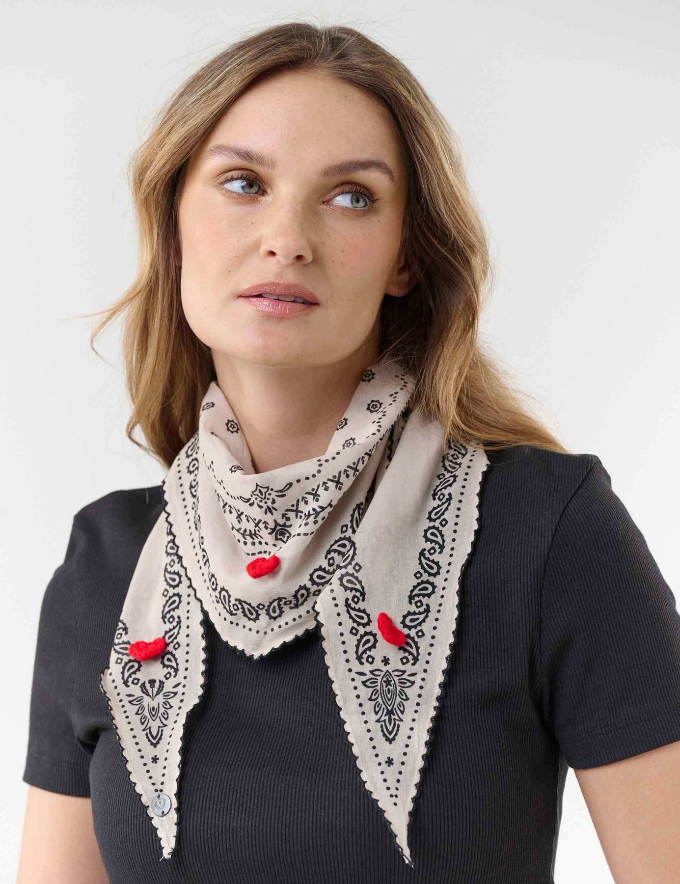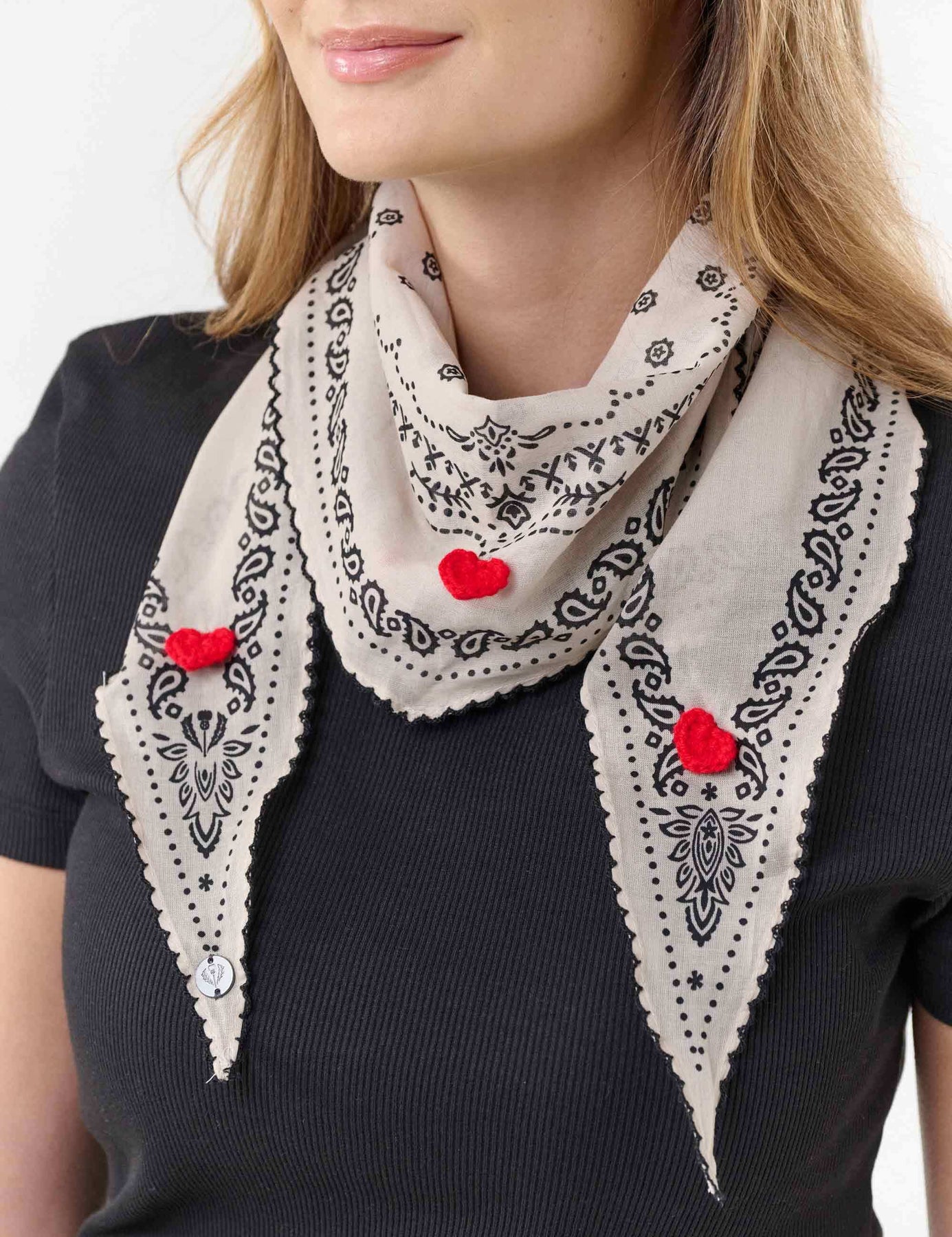 The romantic FRAAS women's square (36 x 132 cm) in diamond shape with paisley design, crocheted edge and red heart details is the ideal gift for yourself or a loved one - perfect as a scarf, hairband or bag accessory. Includes an elegant gift bag with red hearts and a lovely greetings card.