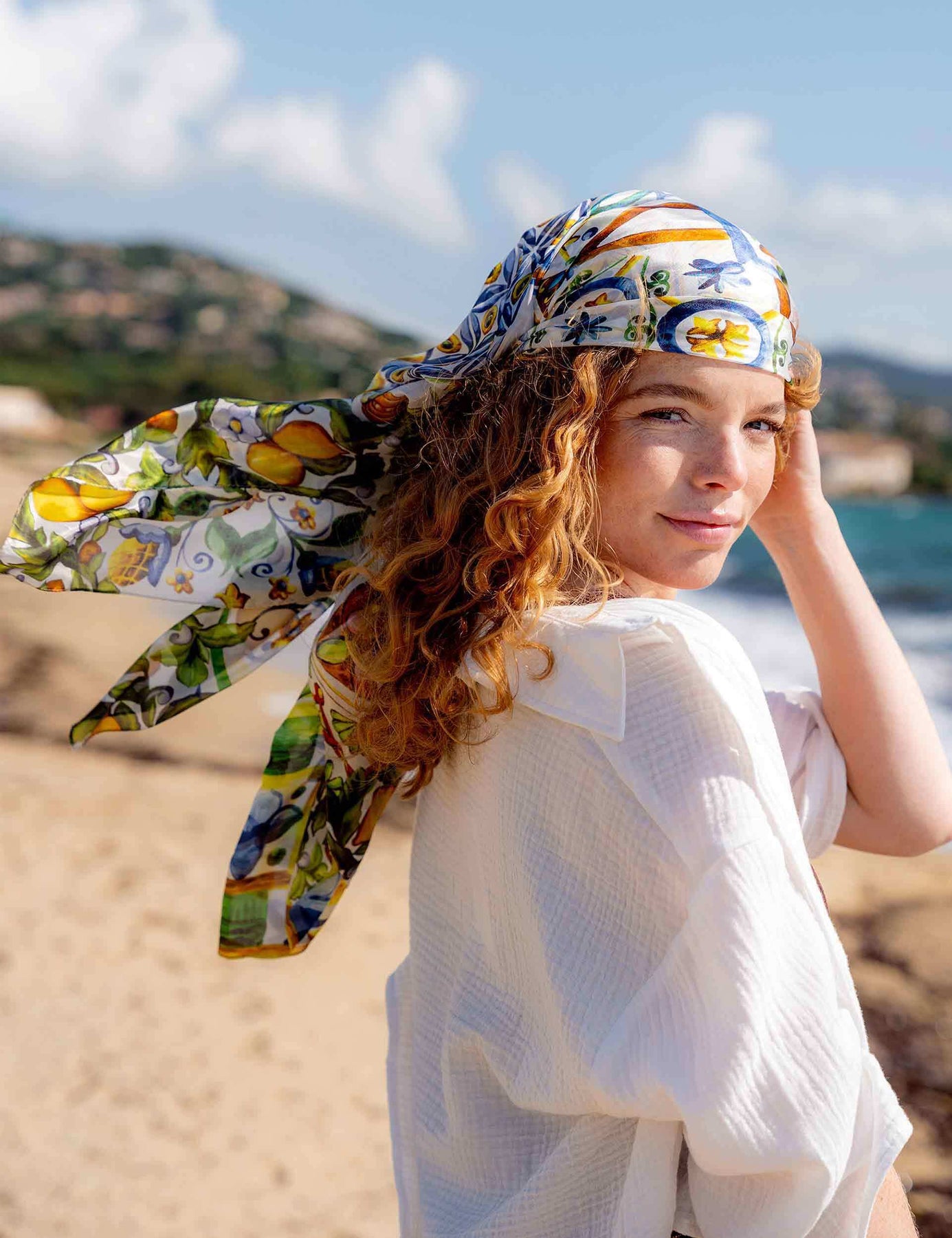 FRAAS XL silk stole for women (100 x 200 cm) with a colorful mosaic design with lemons, reminiscent of hand-painted tiles as seen on vacation in the south - makes you want to enjoy the sun and sea. Versatile: can be worn as an XL scarf, skirt, knotted top or pareo/sarong over a swimsuit, ideal for the beach bar, pool and vacation. 100% silk with brilliant colors for a luxurious, light summer look.