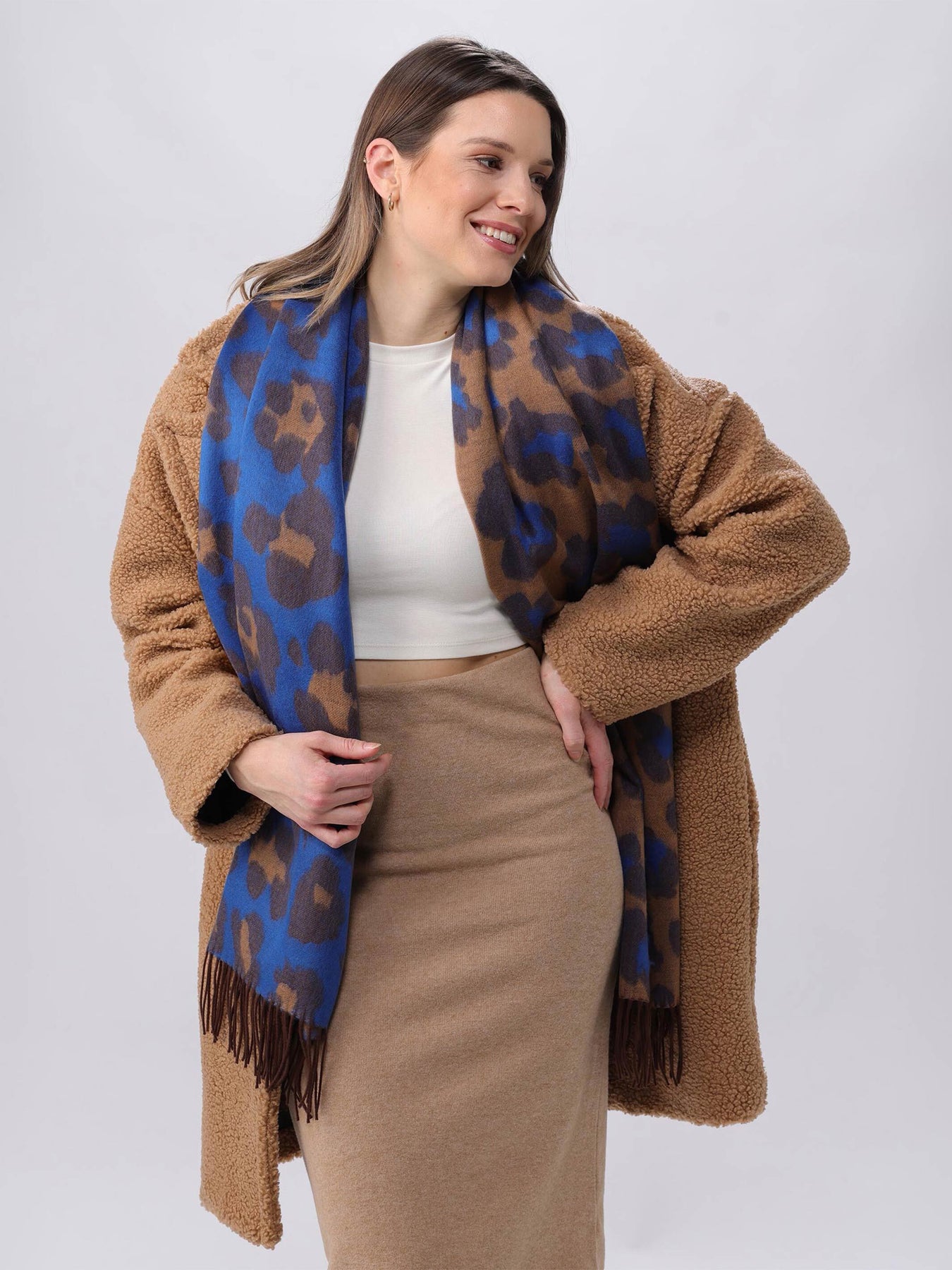 Two-coloured Cashmink scarf with leopard-design