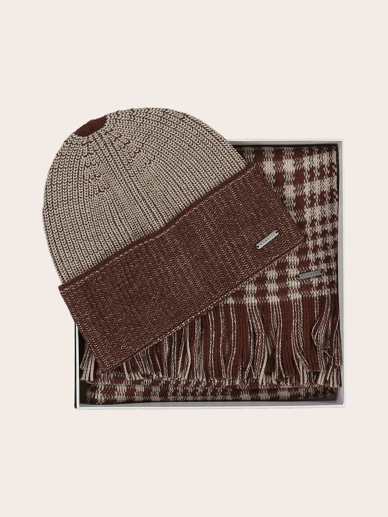 bugatti Geschenkset Beanie und Raschelschal mit klassichem Karo aus Polyacryl