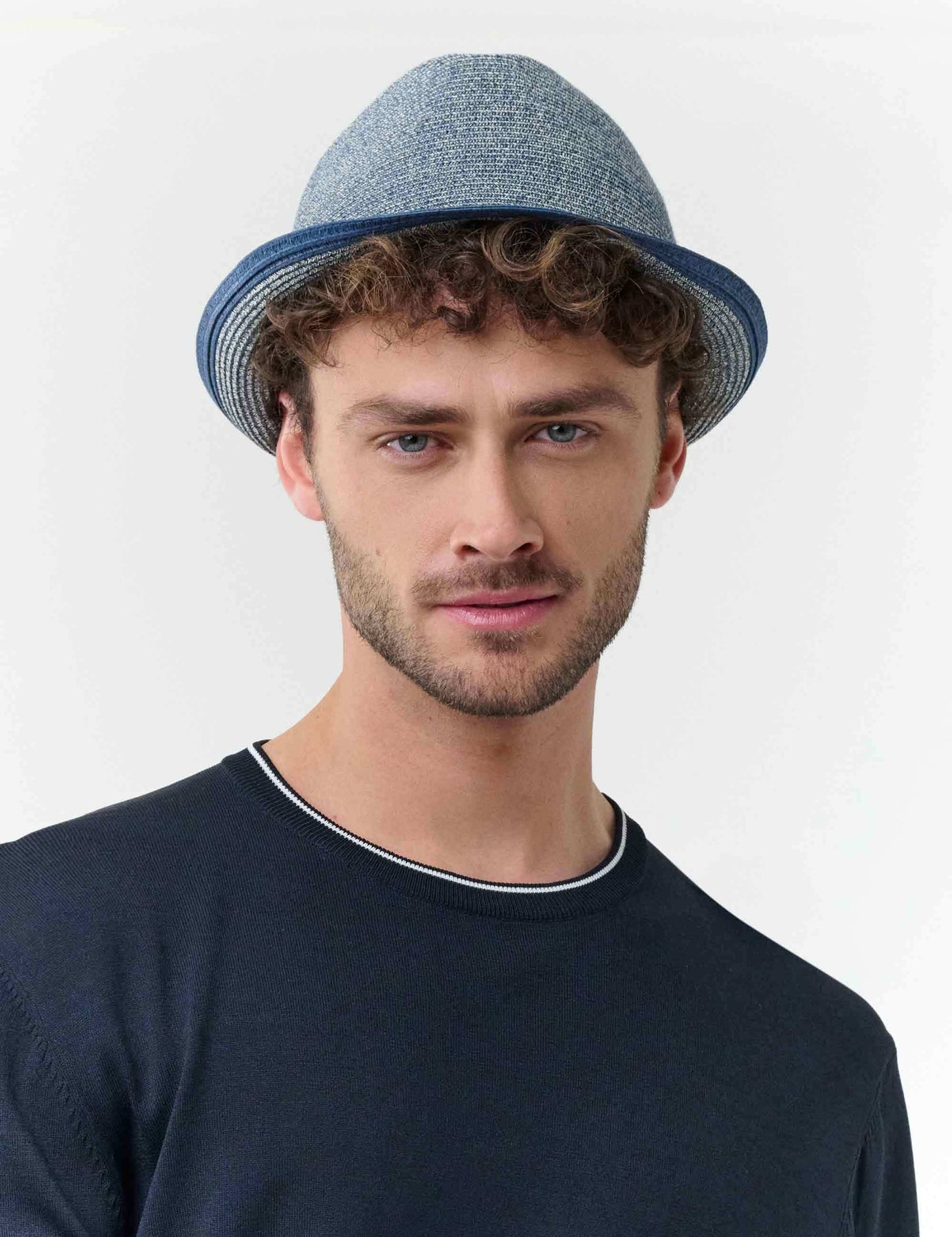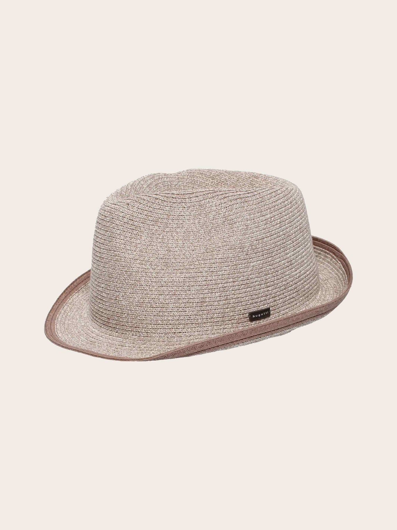 Leichter bugatti Trilby für Herren mit melierter Web-Struktur und farblich abgesetztem Hutrand (25 x 28 cm). Das seitliche Metall-Label mit bugatti-Logo setzt einen eleganten Akzent. Ideal für den Sommer: Der Hut ist faltbar und passt in Koffer oder Hosentasche, ohne seine Form zu verlieren – perfekt für Reisen und unterwegs.